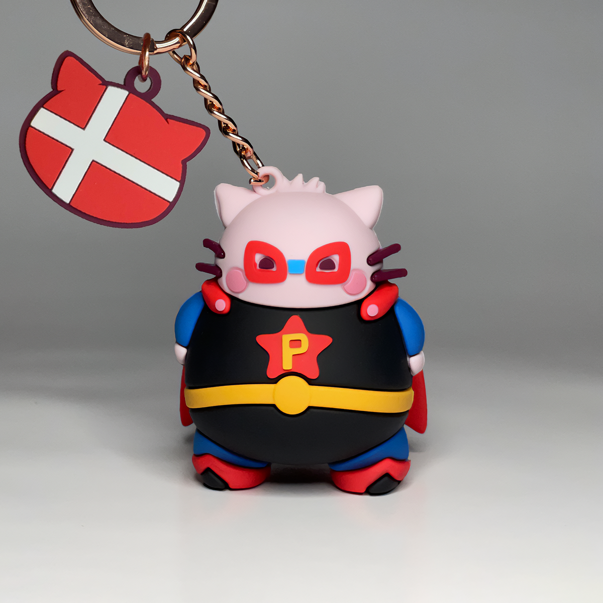 Superhero Pembe Keychain: Unlock the power of fun with our Superhero Pembe keychain. Made with durable, child-safe PVC, it's an exciting addition to your collection that will save the day! Each keychain measures 4x5x6 cm, making it a perfect size to be a charm for your backpack or keys. The lobster clasp ensures secure attachment. Collect all variants and showcase your love for Pembe the Pink Cat!